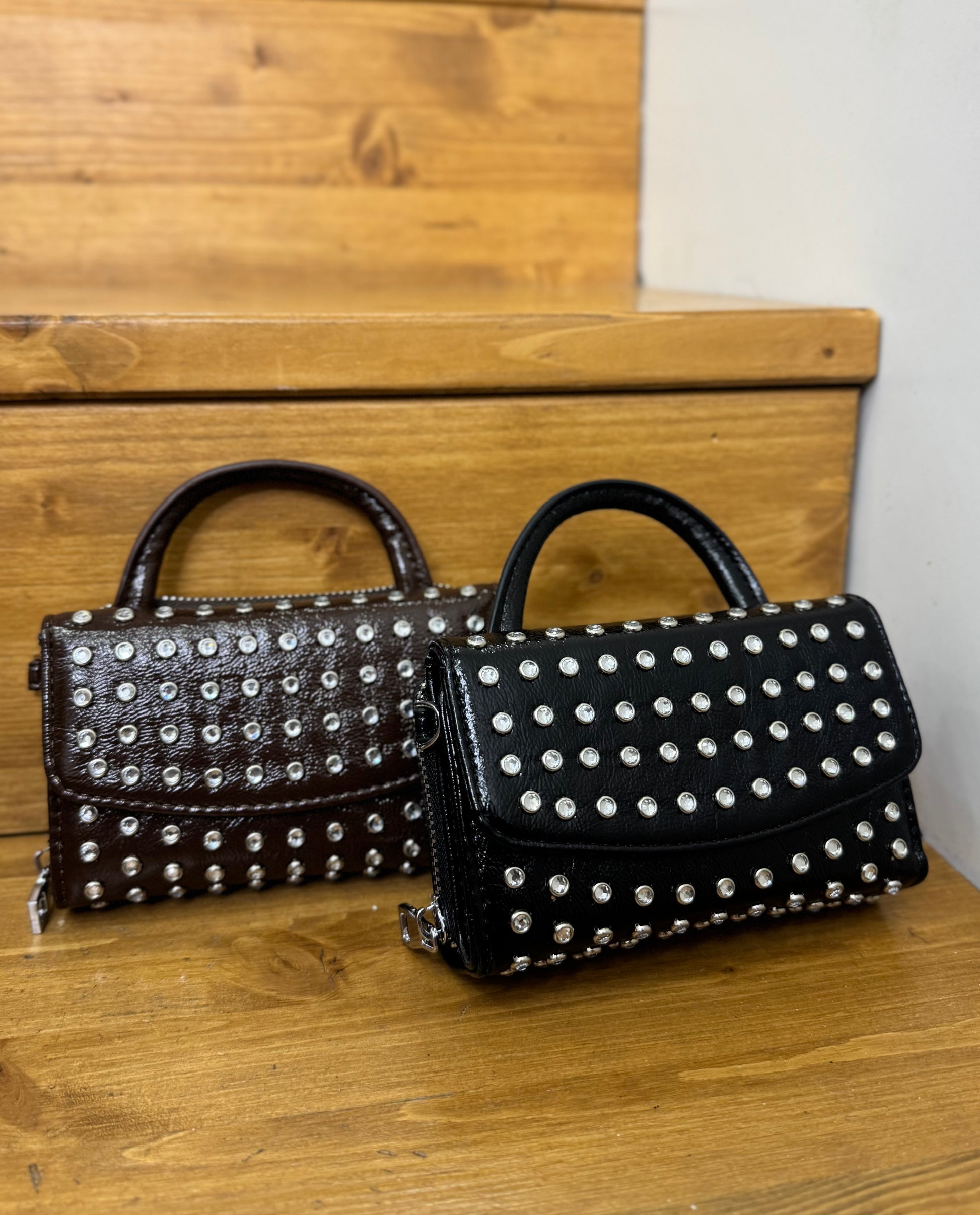Un portafoglio compatto ma super capiente, perfetto per chi cerca stile e praticità. Il design con borchie luminose dona un tocco grintoso e glamour, mentre gli scomparti interni permettono di organizzare al meglio carte, contanti e documenti. Chic e funzionale, è l’accessorio ideale da portare sempre con sé.