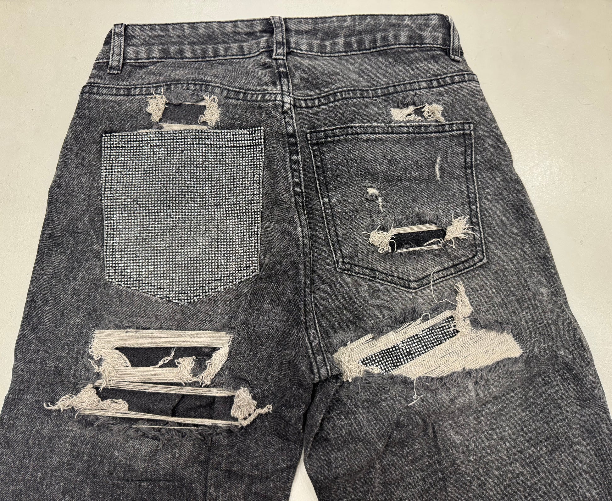 Jeans palazzo, vita media e tasca posteriore brillantinata, tessuto fermo